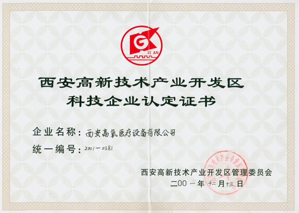 西安高新技術(shù)產(chǎn)業(yè)開發(fā)區(qū)科技企業(yè)認(rèn)定證書