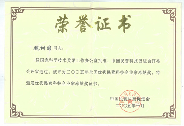優(yōu)秀民營(yíng)科技企業(yè)家奉獻(xiàn)獎(jiǎng)